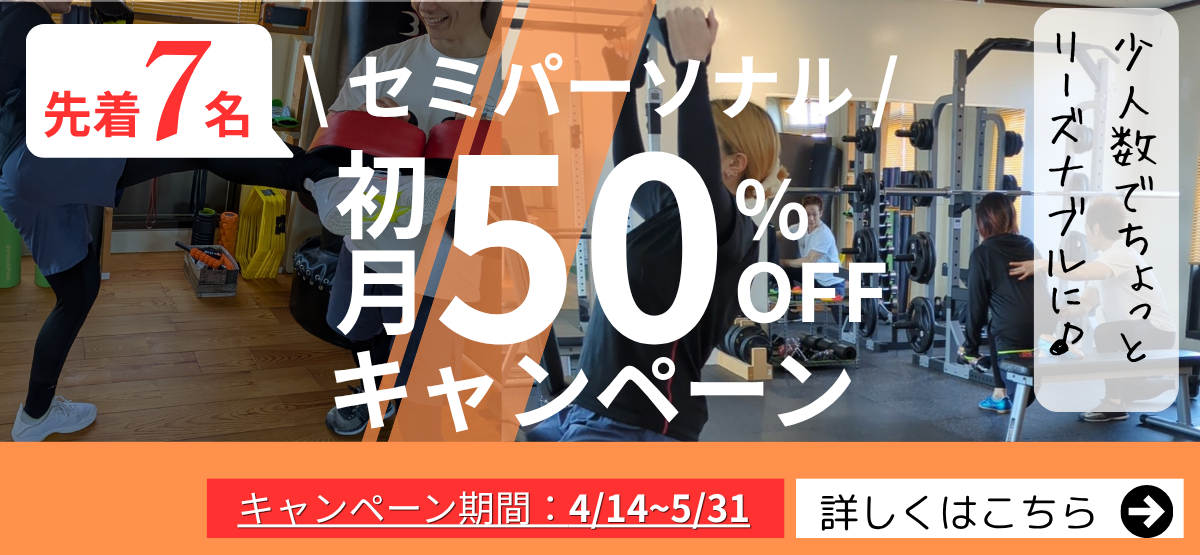 パーソナルトレーニングに加え、一人ひとりに合わせたサポートを少人数で受けられる「セミパーソナル」もご用意。価格を抑えながら無理なく続けやすいのが特徴です。 体作りは継続が何より大切。体型も習慣も取り組む期間が短いほど戻りやすく、長く続けることで定着しやすくなります。 セミパーソナルはダイエットやボディメイク・健康作りに「腰を据えて取り組みたい」という方に特におすすめです。他にも「気軽に始めたい」「パーソナルで基本を覚えた後はセミパーソナルで続けていきたい」という方にも選ばれています。