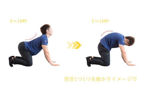 - 「息を吐きながら」背骨を丸めて5~10秒キープ