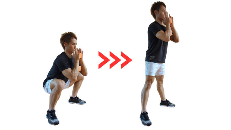 椅子に座るようにお尻を引いてしゃがみ、立ち上がる