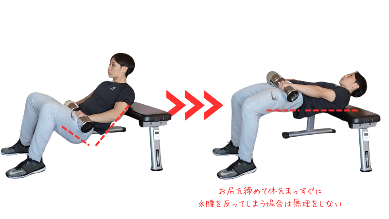 上げ切ろうとして腰が反りすぎないよう注意しましょう。