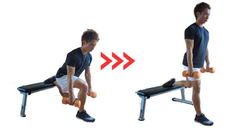 注意点はブルガリアンスクワットに比べ、安定感が少なくなるので筋肉へ強い刺激が掛けづらいこと。よりボリュームのあるお尻を作りたい人には向かない種目と言えます。